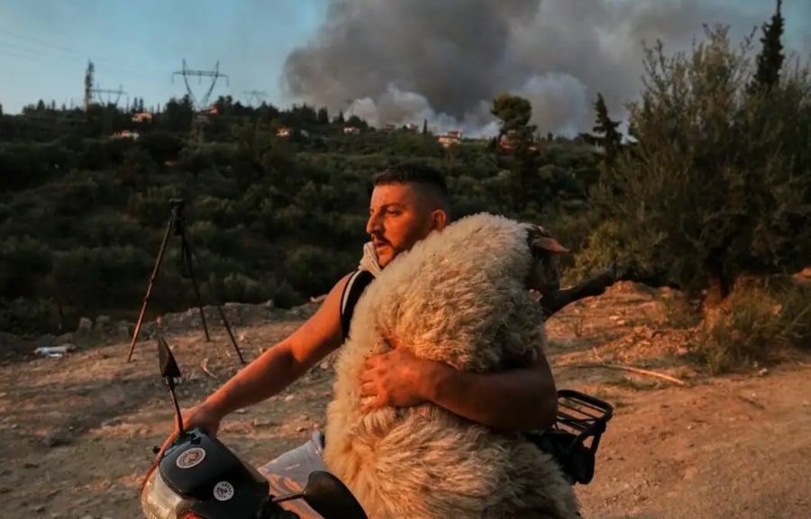 Πρόκειται για νεαρό εργάτη που απαθανατίστηκε να σώζει πρόβατο με το μηχανάκι του, από τη φωτιά που κατέκαψε την Αχαΐα.